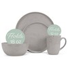 - 16 PIECE SET - Each service includes 1 dinner plate, 1 salad plate, 1 bowl, and 1 mug; Dinner plate measures approximately 10.5 inches in diameter, Salad plate measures approximately 8 inches in diameter, Bowl measures approximately 6.25 inches across and holds approximately 18 fluid ounces, Mug holds approximately 12 fluid ounces