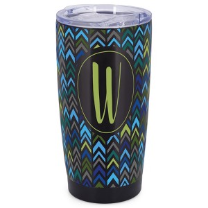 CUTE & QUIRKY: With fun and vibrant colors, this slim tumbler features the monogram letter "W" with a herringbone arrow pattern in shades of blues and greens on a sleek black background. Proudly printed with care in the USA at a facility in the heart of the Midwest!. MADE TO LAST: Made of high-quality stainless steel with double-wall insulation for long-lasting, durable drinkware. Each tumbler cup holds approximately 20 fluid ounces of your favorite hot or cold coffee, tea, latte, or cocoa.. FUNCTIONAL & GORGEOUS: A comfort, no-spill slide lid fits snuggly making it an ideal companion when you're sipping drinks on the go. Fits in standard sized cupholders. Add to your morning routine of coffee or nightly herbal tea. EASY CLEAN UP: Handwash recommended; Not safe for microwave use; Stack and store, or show-off for decorative, beautiful display in your home caf� or coffee bar.. GREAT FOR GIFTING: Uniquely illustrated with hand-drawn detailing, this dynamic imagery was created by our enchanted team of in-house graphic artists; Contained in protective packaging; Ready for easy gifting for birthdays, holidays, Christmas or any celebration.