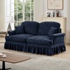 Elegant Mid-Century Chenille 2-Seater Sofa ¨C Flared Arms, Removable Ruffles Pleats Skirts, Spindle Legs, Oversized Love Seat for Living Room