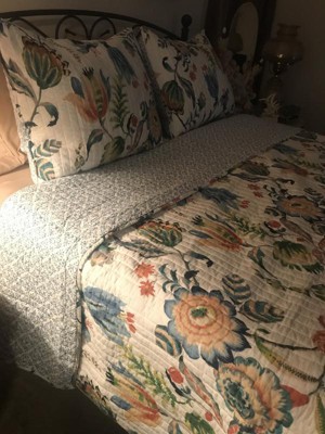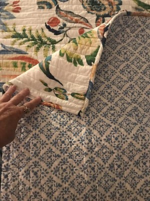 [This review was collected as part of a promotion.] This quilt is so pretty for spring and summer. I’m waiting on the matching pillow and some curtains I bought to come in before I put it on my bed. I washed it already and it maintained its shape and color. It isn’t the thickest quilt but perfect for these warm months ahead. The material is so soft. The queen size fits like a queen… not like a full which is great because I like to have some overhang.