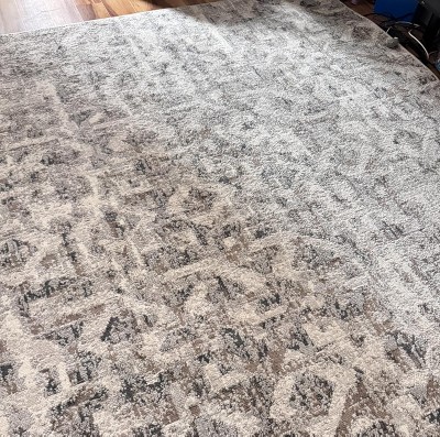 A: The Eliot Geo Area Rug Gray is available in the following sizes: 2 ft. x 7 ft., 5 ft. x 7 ft. , 7 ft. x 10 ft. and 9 ft. x 12 ft.