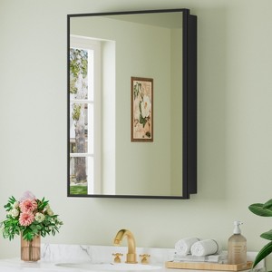 Elise Medicine Cabinet with Mirror, Surface or Recessed Bathroom Medicine Cabinet, Adjustable Tempered Glass Shelves, Reversible, Black