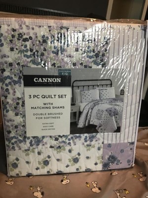 3pc Full/Queen Elissa Patchwork Quilt Set Purple/White - Cannon: Woven Polyester, Floral Design, 180 Thread Count