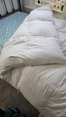 Words are not enough to express how awesome this comforter is. It is extremely well made. No feathers poke out. Super soft and comfortable. I feel like sleeping all day. I also do not get sleep sweats with this comforter. This one is a winner! 🥇