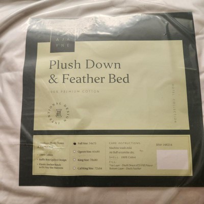 This featherbed is the ultimate topper! I put this on my mattress because it was too firm and I like a soft mattress. This fits perfect and feels like you are sleeping on a bed of fluffy white clouds! Very easy to clean and made from quality materials, I would recommend this to anyone wanting to upgrade their bed and their night’s sleep!