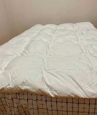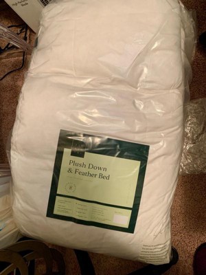 [This review was collected as part of a promotion.] I’m usually skeptical about bedding but this topper is a dream. It’s extra soft and molding to the body. Easy to put on and take off, the down is rich and worth it