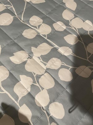 3pc Full/Queen Ellen Botanical Leaf Quilt Set Gray/Yellow - Serta