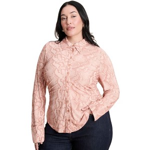 ELOQUII Printed Button Up Top - 14, Snakeskin Sheer
