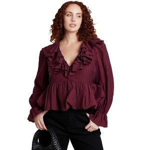 ELOQUII Romantic Ruffle Blouse - 14, Maroon Banner
