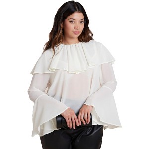 ELOQUII Ruffle Collar Top - 14, Jet Stream