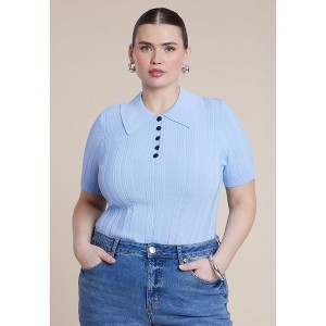 ELOQUII Veriegated Rib Collared Sweater - 14/16, Dutch Canal