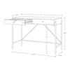 Very heavy because it’s made particle wood and the legs are not metal but cheap plastic made to look like metal. Edges were sharp and the overall feel of the piece looked really cheap. I opened the box, took a look at the pieces, then closed up the box and took it the store to return.