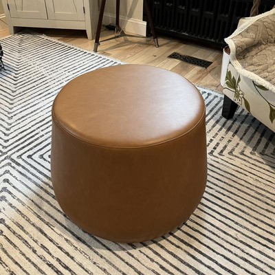 I wanted to keep this but it was too big for where I needed it and there wasn’t a better place for it, so I reluctantly returned it but definitely would’ve kept it if I had the room. The faux leather looked and felt really nice. It was solidly build but not too heavy. I also liked the thimble shape. The color was as pictured - a nice shade of saddle brown. I can’t speak to the durability but I would buy it again if ever I needed an ottoman.