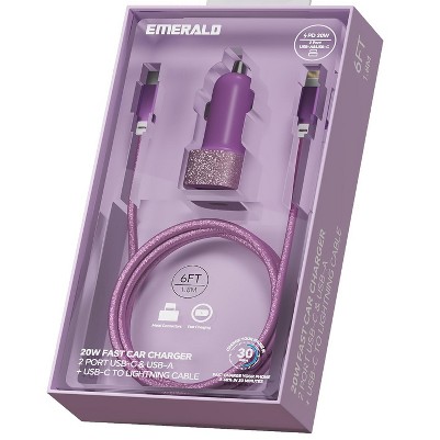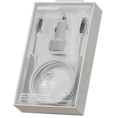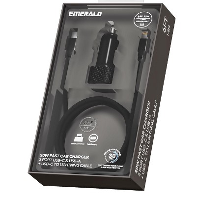 Product Name: Emerald 20W PD, 2 Port Car Adapter and 6ft Type-C to Lightning, Fast Charge, Braided Cable for Apple Devices