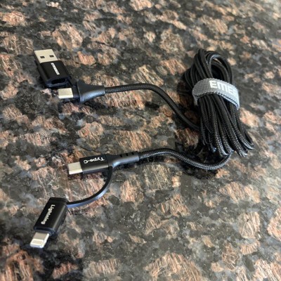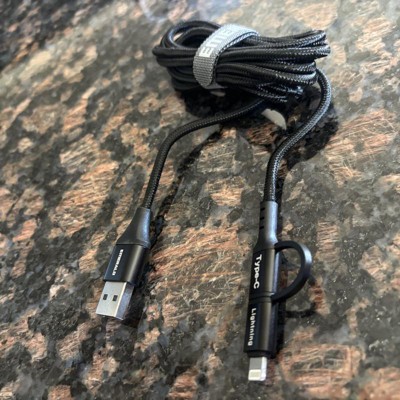 Emerald 6ft 4-in-1 Braided USB-A & Type-C to Lightning & Type-C, Fast Charging & Data Syncing Cable - Black