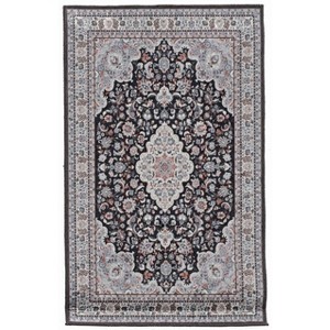 2'2"x3'2" Emerald Barton Rug Black/Cream - Linon: Traditional Medallion Accent, Low Pile, Indoor, 38" Rug
