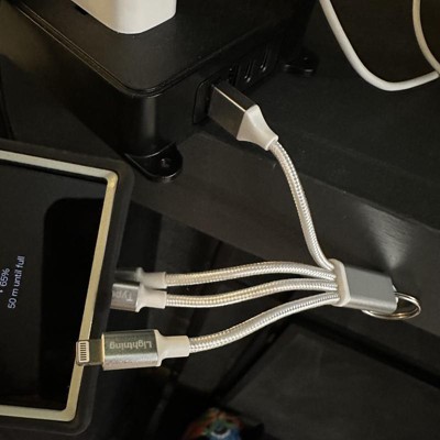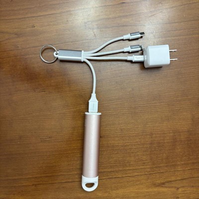 [This review was collected as part of a promotion.] I love that this has multiple types of chargers in one piece together. It’s a great size in that you can easily travel with it- stick in your purse or backpack. It would be great to bring to work if you need another charging option for your phone or air pods! I love that the types of chargers are labeled so that it’s user friendly. You can also put this on a keychain with the hook element which is handy. I received an incentive to write this review.