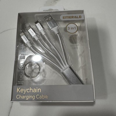 Emerald 3-in-1 Braided Keychain Design USB-A to Lightning, Type-C & Micro USB Fast Charging & Data Syncing Cable - Black