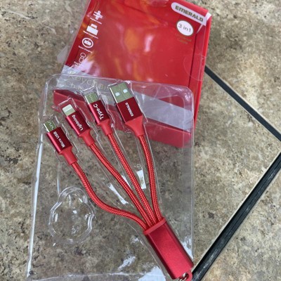 Emerald 6ft 3-in-1 Braided USB-A to Lightning, Type-C & Micro USB Fast Charging & Data Syncing Cable