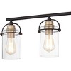 Emerson's transitional silhouette charms with unique harness-style brackets and simple clear glass shades. These bath vanity lights are available in multiple sizes and either a Brushed Nickel or a Matte Black finish. The Brushed Nickel finish boasts a classic simplicity while the Matte Black finish gives way for a more industrial feel with its use of mixed metals. Whichever option you choose, you can't go wrong with Emerson.
