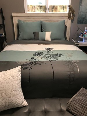 8pc Queen Emilie Comforter Set Ivory/Gray/Blue - Riverbrook Home: Quilted Floral Bedding with Decorative Pillows & Shams