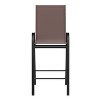 Product Name: Emma and Oliver Set of Two Brown Outdoor Barstools with Textilene Seats and Backs and Powder Coated Steel Frames