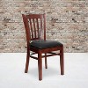 Product Name: Emma and Oliver 2 Pack Vertical Slat Back Mahogany Wood Restaurant Chair - Black Vinyl Seat