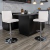 Product Name: Emma and Oliver 2 Pack White Vinyl Adjustable Height Barstool with Panel Back and Chrome Base
