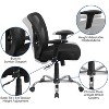 Stay comfortable during those long days at the office with a big and tall desk chair. Designed to support larger and taller body types, our mesh office chair has a tested weight capacity of up to 400 pounds to ensure a comfortable seating option for everyone. Discover the structure you need with a mid-back office chair with built-in lumbar support and an adjustable back. The gently contoured backrest shape lends additional comfort, with a ventilated mesh back design that provides plenty of airflow during your workday. Enjoy a plush construction with a broad-width padded seat featuring a waterfall front edge to help alleviate pressure on your lower legs. The gentle design allows for greater circulation while seated, dissipating pressure points for long hours spent at your desk. A pneumatic adjustment lever underneath the seat lets you fit your chair to your preferred height, making it easy to create a comfortable fit for a variety of tasks. Reduce strain while working with an office desk chair that includes adjustable armrests. The supportive construction helps to reduce the pressure on your shoulders and neck, creating a more relaxed office experience. Conveniently reach anything in your office with 360 degrees of swivel motion. The base of the adjustable office chair includes five wheels for smooth rolling and a bright chrome finish for a touch of style. Find the perfect big and tall office chair with sleek executive style. The black upholstery and mesh offer modern style while the supportive construction and adjustable features make it easy to find the perfect fit for you