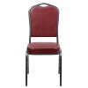 Make an impressive presentation in your banquet hall when clients come to visit your facility with these ballroom chairs. Built for the commercial industry these popular crown back banquet chairs have been tested to hold up to 500 pounds. With a high seating capacity these stack chairs are perfect for the event rental business. This standout hospitality chair can be used as is and still command attention or be dressed up for formal events by placing a chair cover over it. The chair is cushioned with 2.5" thick CAL 117 fire retardant foam and is covered in durable upholstery for high usage. The sturdy frame with gracefully angled legs are made of 16 gauge steel in a lasting powder coated finish. Double support braces reinforce the frame to give it great strength and durability. Bumper guards prevent scratches on the frame when stacked (up to 15 high) and non-marring floor glides protect your floor by sliding smoothly when you need to move the chair. This multi-use stacking upholstered stack chair is an excellent option for churches, banquet halls, training rooms, hotels, convention centers and schools. Add banquet chairs to your home dining table to add a contrasting look to your dining room or kitchen.