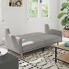 Functional style abounds in this split back sofa futon. Soft and comfortable faux linen upholstery in gray covers ultra plush padding for low maintenance, welcoming style. Sinuous springs support under the cushions provides added comfort while sitting, reclining, or sleeping. The convenient split back design folds flat while removable arms create an open space for taller guests. Sturdy wooden construction supports up to 600 lbs. of static weight while the wooden legs add a natural feel to this piece. Enjoy your new sofa with hassle free assembly in 10 minutes or less. Low maintenance upkeep is ideal for busy lifestyles, simply wipe clean with a damp cloth. Whether your style is ultra modern or coastal chic, this split back sofa futon is ideal for any aesthetic or style.
