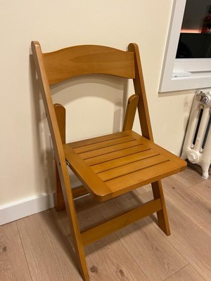 [This review was collected as part of a promotion.] This chair is great!! It’s made of a nice and sturdy material, the color and wood grain is pleasant, and it folds up nicely to be tucked away. I’ve loved having it as an option for when guests come over and it’s a lot more attractive than the plastic or metal folding chairs we’ve all sat on At least once at a function. I don’t have any complaints.