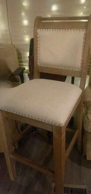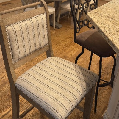 [This review was collected as part of a promotion.] French style and farmhouse design combine to create the Linon Emmy Natural Counter Stool. The washed finished wood is perfectly accented by the stripe ticking fabric and brushed silver nail-heads. Makes for the perfect barn/farmhouse vibe barstool. The washed finished wood, striped fabric, and brushed silver nailheads create a charming aesthetic. With footrails for stability and durability, it is perfect for counter height. Not only does it have a stunning design, but it is also easy to assemble. It offers exceptional comfort, and the high-quality craftsmanship gives it a luxurious feel and appearance. It is definitely worth it.