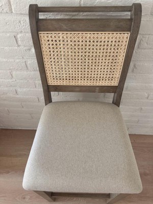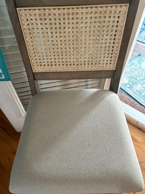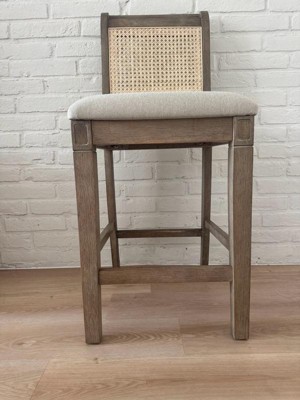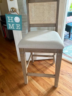 [This review was collected as part of a promotion.] This comfortable stool is perfect for homes with a coastal or beachy feel. It is durably constructed. It was easy to assemble. The rattan backing easily blends in to decor. The seat is a linen styled fabric that is light in color. The height hid well suited to bars and breakfast counters.