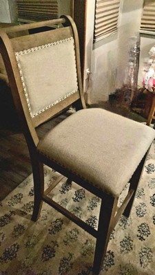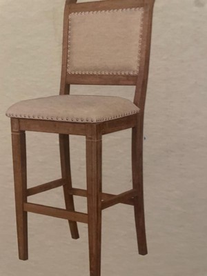[This review was collected as part of a promotion.] Linon Furniture Natural Barstool 26 inch is made of strong and beautiful wood, with brass nail head finish and it also has foot rails to keep it sturdy it's able to uphold 275lbs It adds a touch of French style and rustic charm to any kitchen its beautiful rustic wash finish and the brushed silver nail- heads bring beauty and charm to any home. Strong beautiful perfect for any occasion.