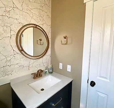 It took me over a month to decide on the wallpaper and I am glad I choose the Kintsugi Gold for my powder room. It is gorgeous with the dark blue cabinet and gold faucet & knobs. My wallpaper hanger said that he loves the high quality of this brand. You can't even see any seams!