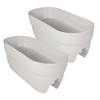 Got a green thumb? With the Bloomers Rail Planter, you can enjoy harvesting herbs, vegetables, and flowers even if you live somewhere with limited space. The Bloomers Railing Planter is designed for dimensional lumber and metal railings that are 1.25” to 3.875” wide (2x1, 2x4 and 2x6 railings traditionally). The smaller interior rail recess measures 1.375" at the upper dimension and 1.625" at the opening. The larger interior rail recess measures 3.5" at the upper dimension and 4" at the opening. The flat bottom width measures 6" across (for setting on top of 6" boards).Stabilizer fasteners are provided for you to install this rail planter on your deck or balcony rails. Just insert at the desired spacing and gently pound in with a rubber mallet. You can further secure the planter with tie downs, bungee cords or by using wood screws and screwing the planter directly into the railing (use caution when drilling screws through the plastic and wood railings). In addition, the 24” length of this rail planter can accommodate twice the amount of plants as a normal-sized rail planter. Made from durable polyethylene resin, this planter can withstand any weather conditions and won’t crack. And because it's HDPE, it is BPA free and perfectly safe to contact edibles at it does not contain, nor ever leach, harmful chemicals. Additionally, the drainage holes at the bottom of the planter allow deep, plant roots to breathe and prevent stagnant water from accumulating. Enjoy planting and harvesting from your outdoor railings, or beautify your front porch with vibrant flowers in the Bloomers Rail Planter from EMSCO Group.