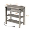 - Bedside Table with Outlets: The small table comes with a charging station that has 2 standard 120V AC outlets, 2 USB-A ports, and a 6.5-foot extension cord. The end table charging station is designed on your left vertical side, fire-resistance PC shell, which is safer to use. you don't have to worry about coffee, water, etc. spilling and causing electric shock.