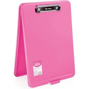 • The plastic clipboard offers a sturdy writing surface and internal storage compartment for pens and pencils.