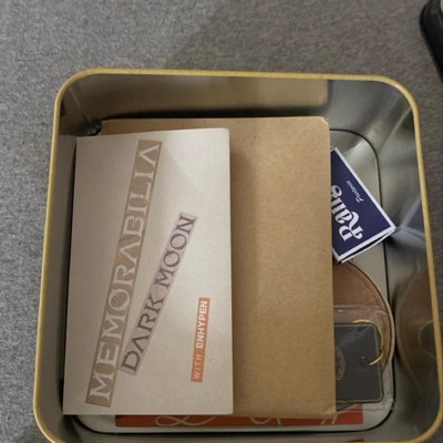 - ENHYPEN’s DARK MOON SPECIAL ALBUM titled MEMORABILIA encapsulates the romance and emotions of destined love in a memento-box. Available in the Moon ver., contents include OUT BOX, CD, CD SLEEVE, KEYCHAIN, COASTER, DANCE TICKET, MEMO PAD, 4 STICKERS, STICKER SET, 7 NAME CARDS, NAME CARD ENVELOPE, 7 ID CARDS, ID CARD ENVELOPE, PHOTOCARD (random 2 of 14), 7 CHARACTER PHOTOCARDS, MATCH BOX, 3 CHARACTER POSTCARDS, POSTCARD, LYRIC SHEET and PAPER ENVELOPE. Dimensions: 168 x 168 x 60 mm.