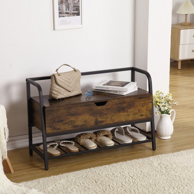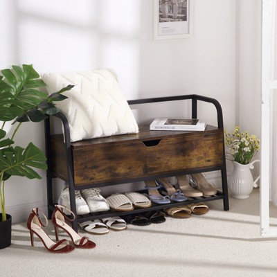 Entryway Storage Bench, 33 in Vintage Shoe Rack Bench with Storage Box