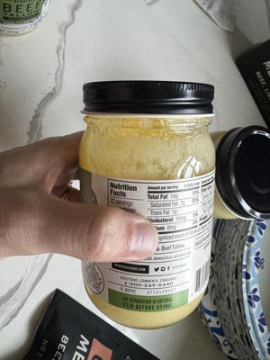 Really disappointed in this product. Not solid, very grainy texture. Once I saw the "refrigerate after opening" on the label, I knew something was off. Well-sourced, high quality tallow doesn't need to be refrigerated and should be solid at room temperature. My body is not happy after cooking with this tallow, either. Did not react well. Going to buy from a family run farm instead (Hackamore Ranch).
