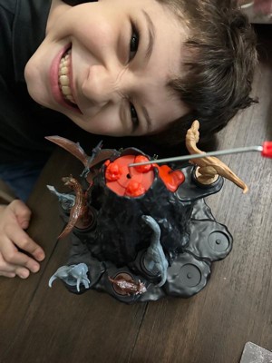 [This review was collected as part of a promotion.] Cute game for my 5 year old son. You have to Spin the spinner and place dinosaurs onto the Volcano, but be careful of the flying Pteranodan who makes the volcano erupt. The first opponent to make the Volcano quake loses! Set includes Volcano game base along with 8 collectible dinosaur figures including the Pteranodon figure to place on the top of the Volcano and spinner. Very fun for a family game night.