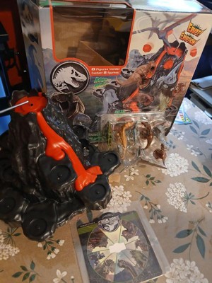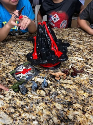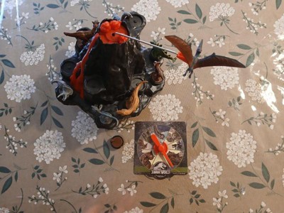 - Set includes volcano game base, along with 8 collectible dinosaur figures - including Pteranodan figure to place on the top of the volcano, and spinner