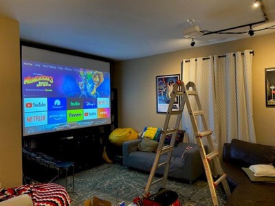 Well I had a lengthy review before I accidentally refreshed the screen... So here is the short version. Ceiling mounted, 8 feet from screen, HDMI sound extractor, and sound bar with woofer. Movies: excellent quality. I've played dvds and bluray from ma PS4, PS5, and Bluray player. 1990s and earlier movies have a certain mechanic graininess to them from how they were originally filmed. Jurassic Park looked like how it did when I saw it in theaters when it came out. Gaming has almost zero latency even with zoom and keystone correction. I've played 10+ different consoles on it. No issues. Currently playing PC on it via Steam. I plays best with 1280x720 because text gets too small for my taste. Sound was a tricky. I prefer gaming with Wi-Fi headphones. I use Linux so HDMI sound is glitchy on the Nvidia GTX 1650 with the 580 driver. Its better to Bluetooth to a sound bar than extract from HDMI on my case. Don't Bluetooth audio while watching movies or of YouTube. The projector gets loud sometimes when brightness is up from running I daytime, specifically morning when the sun hits the windows. The onboard speaker is terrible but it's not ment to be for cinema use. Screen mirroring works great. Use the app. Miracast isnt native on this model. iProjector app is good. Turn off auto-source scanning to clear up disconnect issues if you have an HDMI switch box. Sharpness and brightness is excellent when adjusted correctly.