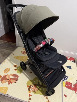First the pros; it is nice and tall for both me and my partner to use comfortably, and the adjustable handle bar is nice. The straps are nice and padded so doesn’t dig into my toddlers shoulders when they try to make a break for it. Unfortunately there were a lot of things that don’t work for us. The back wheels are not spaced enough apart to create good stability for when the occupant wants to look out the side. The wheels also don’t create a bough cushion when walking on a sidewalk. It’s too bumpy and I get alot of looks like I’m pushing them over every pothole in a Boston neighborhood. We got the snack tray for it also and it makes it a lot less compatible, but you just have to take it off and on. Wish some short of bar came with it instead of having to buy all the parts needed to make the stroller functional be for a 1. 5 year old. In the end I would not have picked this stroller due to instability of wheels, lack of smooth strolling, and lack of needed parts to contain a normal toddler.