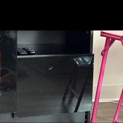 PRACTICAL AND DURABLE: This TV stand is made of artificial wood for extra durability. The reinforced base prevents the TV stand from shaking and supports your TV better.