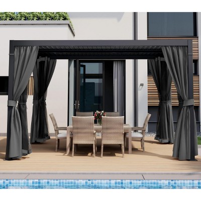 Erommy 12x16ft Louvered Pergola with 6-Panel Pull-Down Screen, White