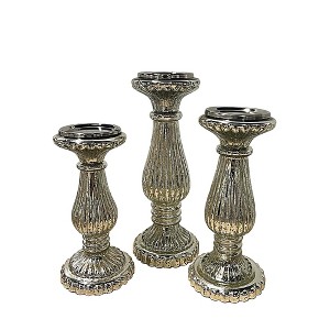 Essential Decor & Beyond 3PC Silver Glass Candle Holder