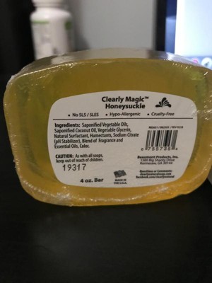 I bought 3 bars of Clearly Magic glycerin soap, beautiful package but it is very difficult to open without a scissors or something, I don't know if there is some problem in this specific Lot 19317, but they're no foam I try 3 bars soaps and No foam, finally I had to throw away.